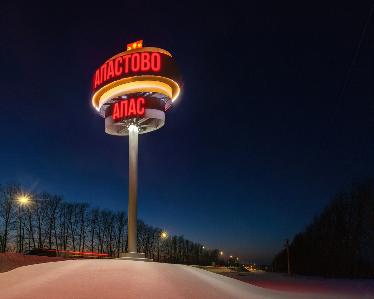 грандиозная стела встречает жителей и гостей Апастово, создавая первое и самое яркое впечатление о ПГТ!